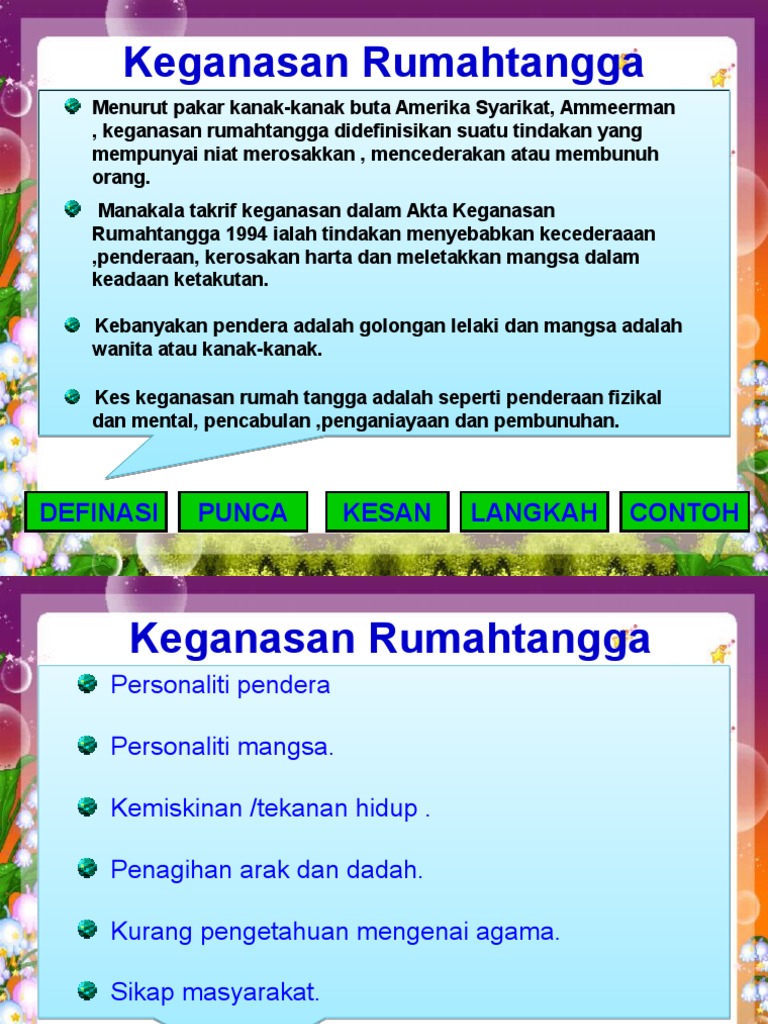Tujuan Akta Keganasan Rumah Tangga 1994 ialah untuk memberi perlindungan kepada mangsa- mangsa keganasan rumah tangga. Didikan agama yang sempurna dapat menghidupkan di dalam jiwa yang penyayang tanggungjawab dan adil. You have just discovered a place that sells Akta Keganasan Rumah Tangga 1994 Akta 521 Dan Peraturan-Peraturan Hingga 1hb Mac 2020 for RM16.